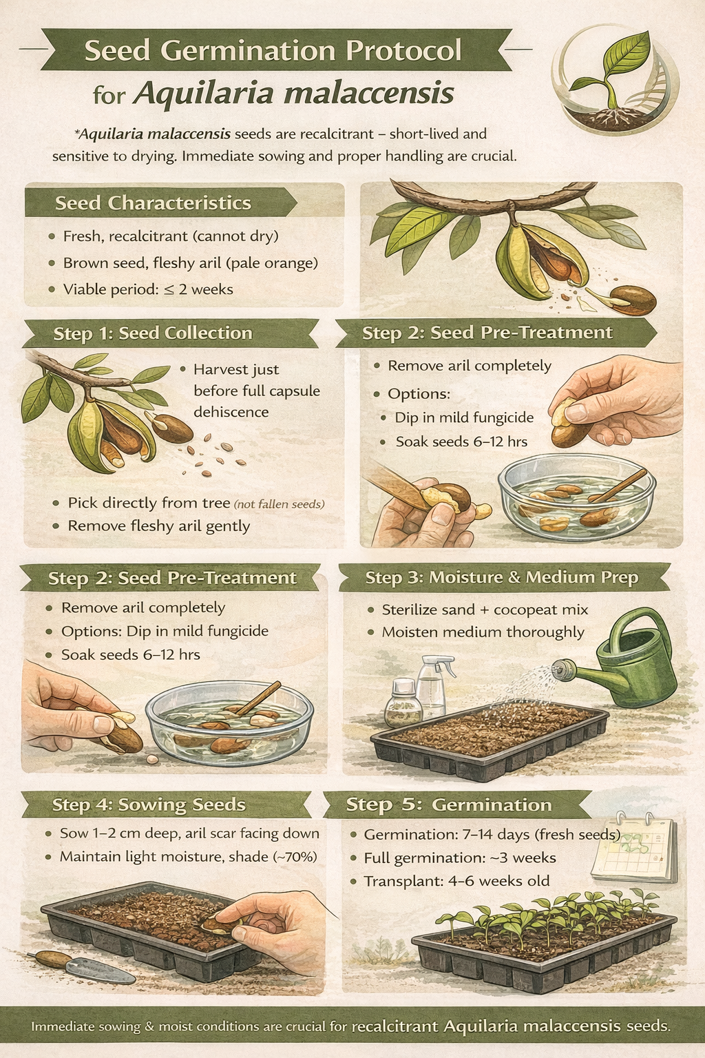 Seed Germination (Sexual Propagation) for Aquilaria malaccensis, useful for both conservation and plantation-scale seedling production programs.